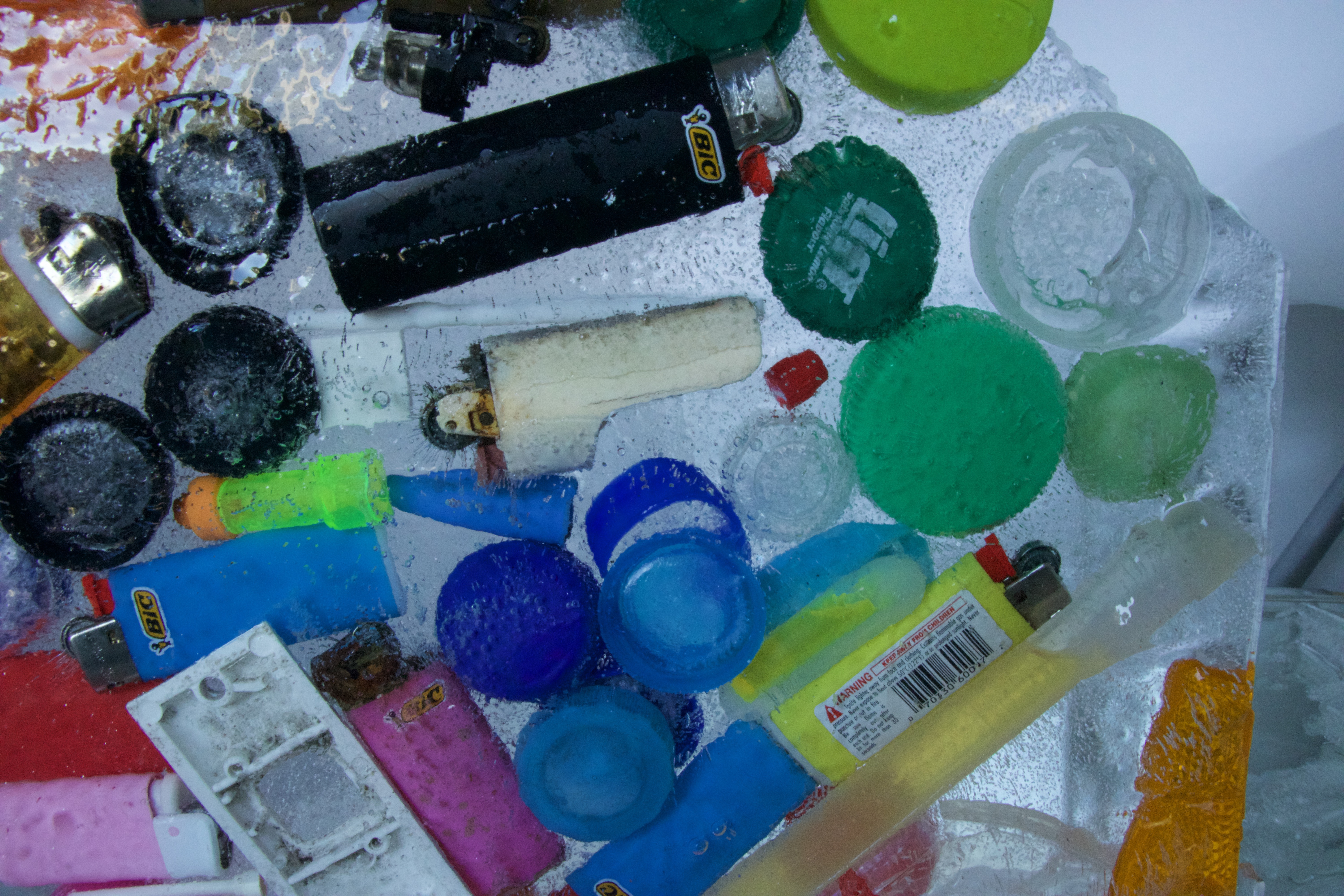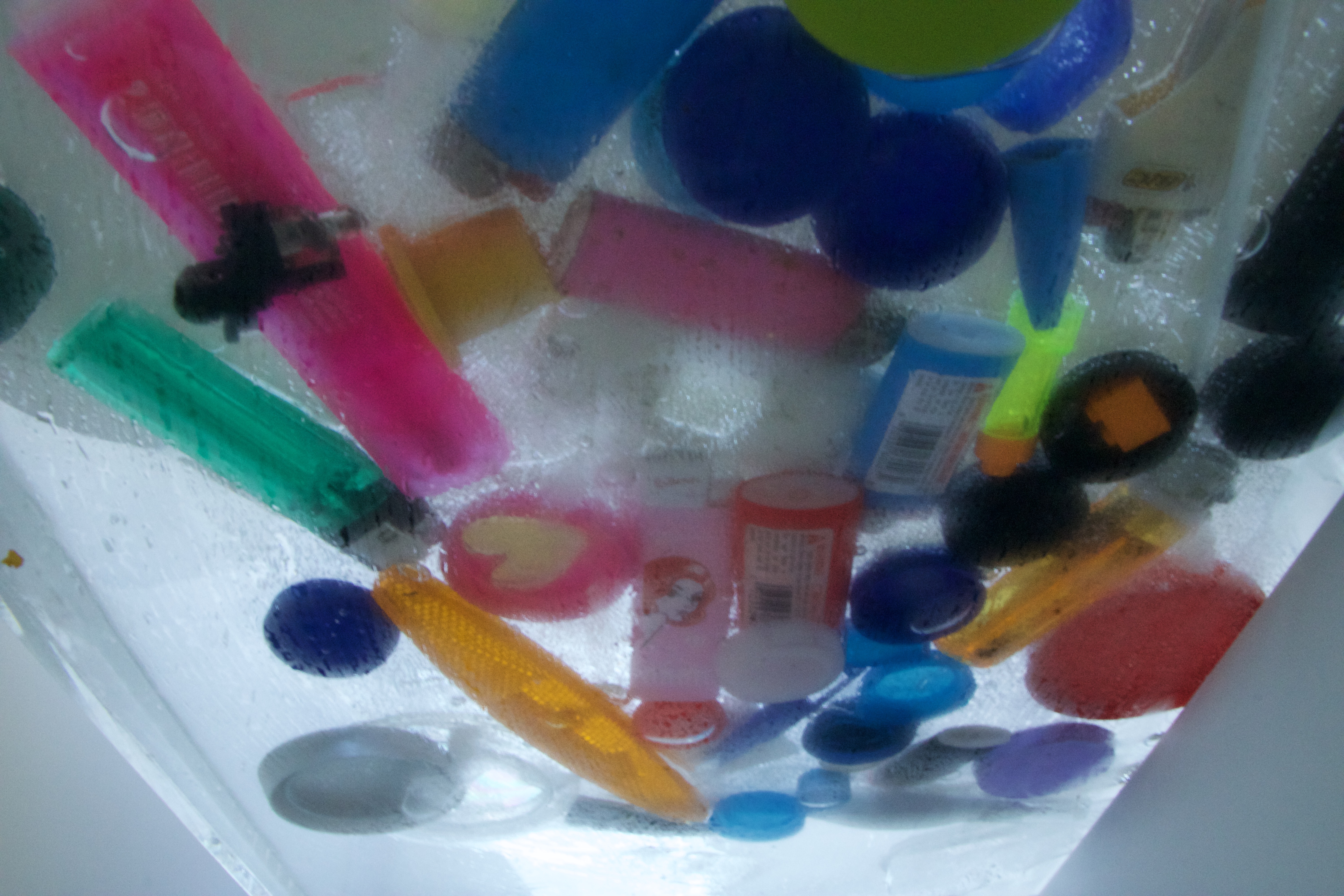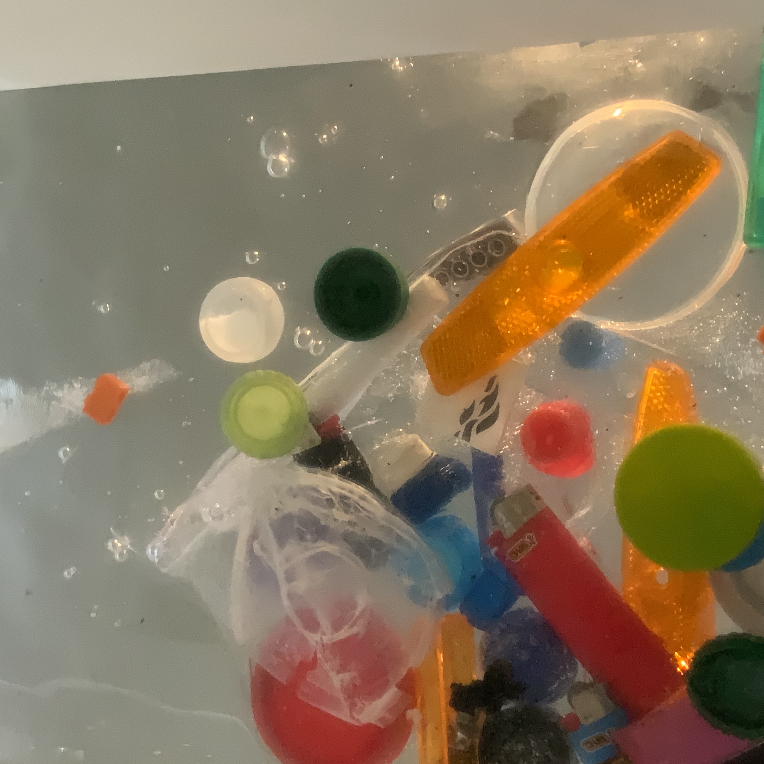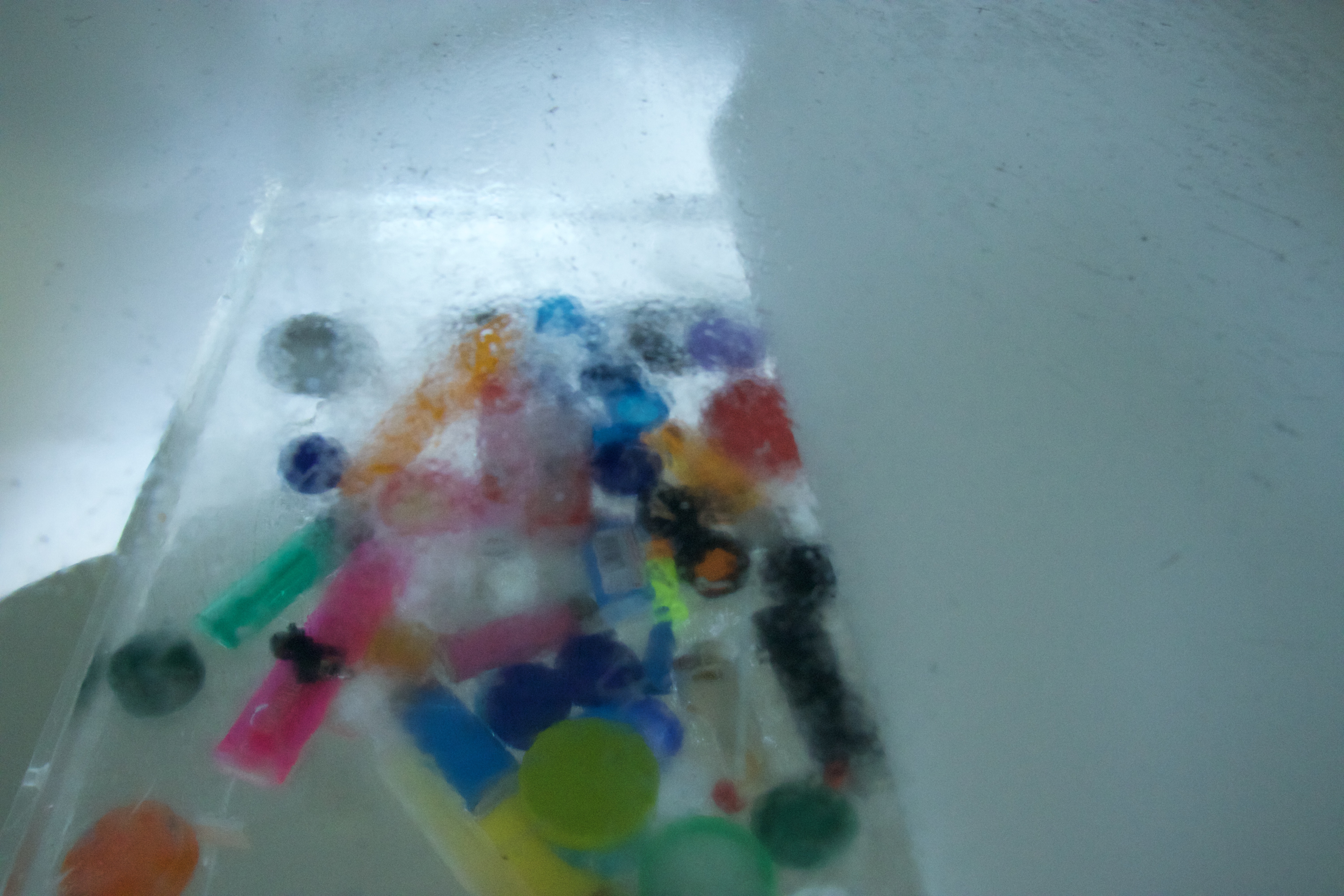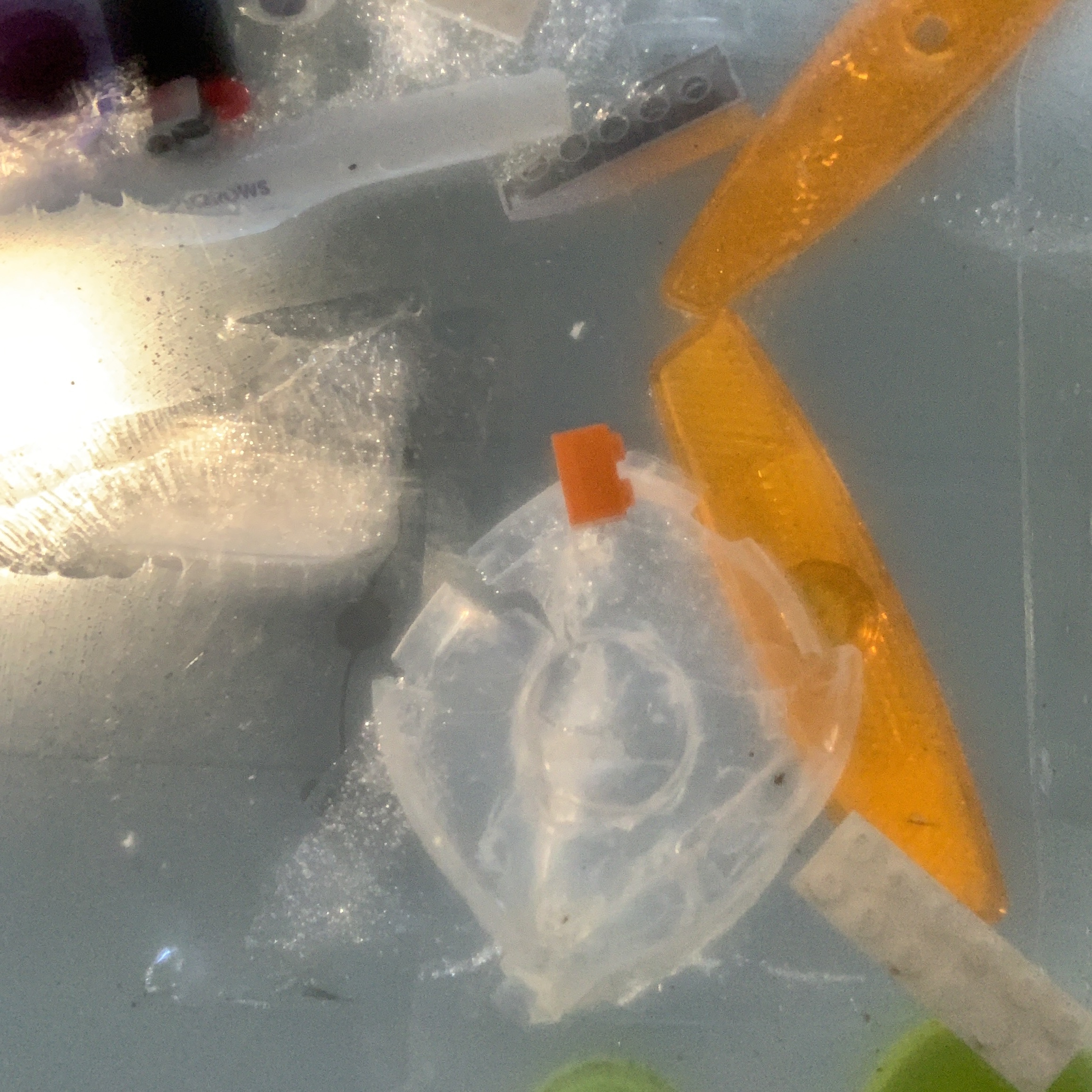 Another example of surrendering to the process submerging ice block in water, using the perspex box and mirror for second photo shootKylie Naylor L Series #1, 2020, Image, found objects, water.