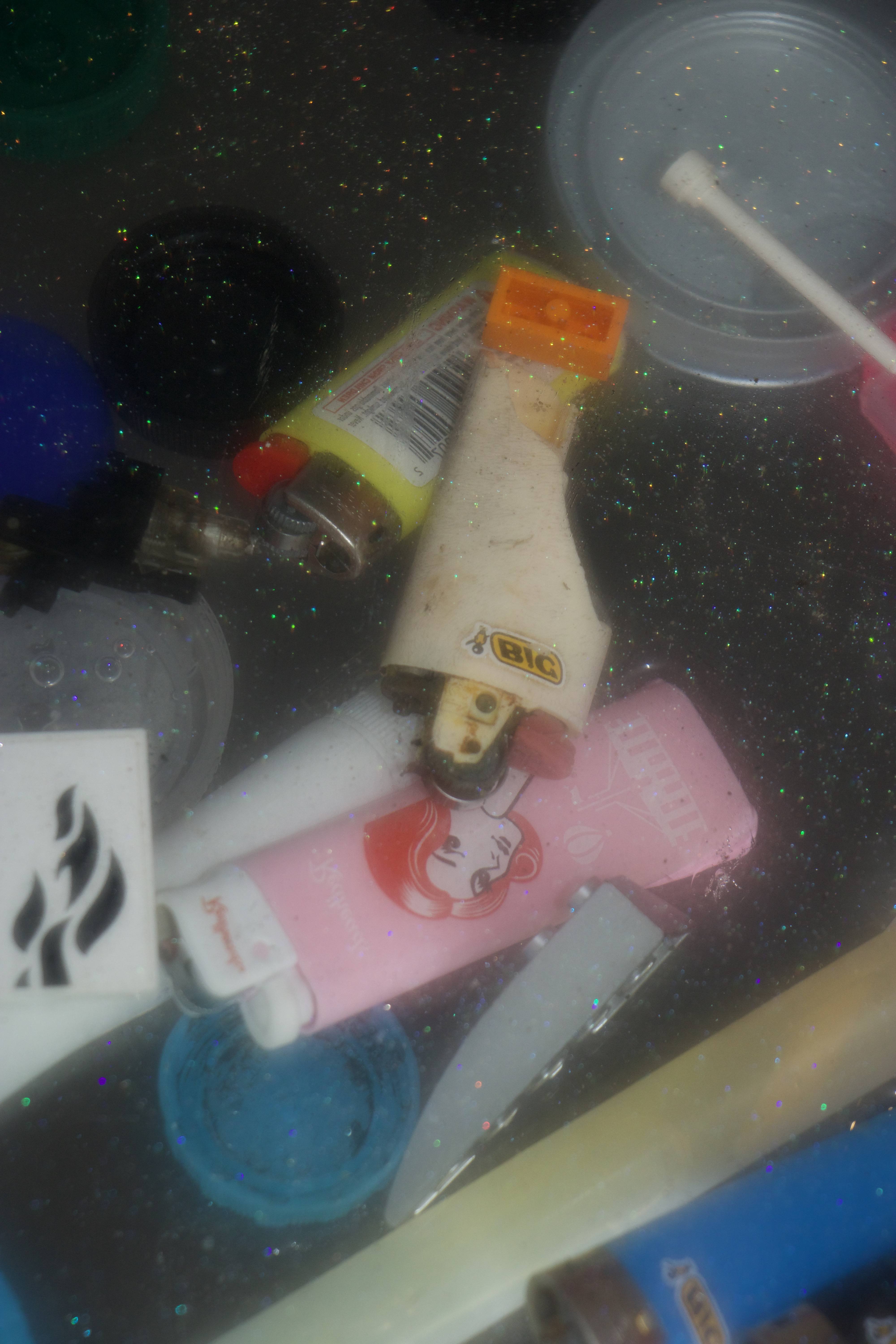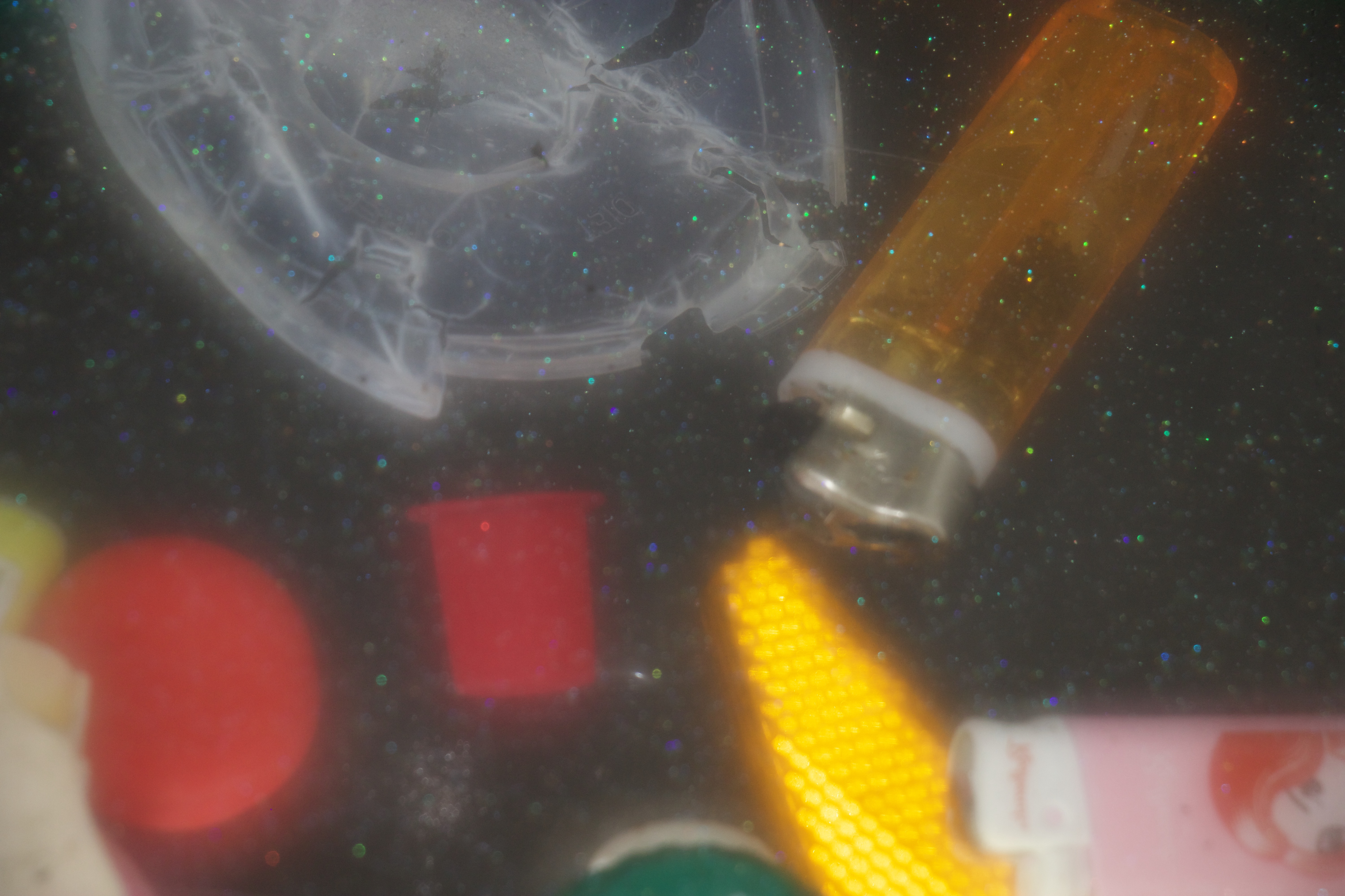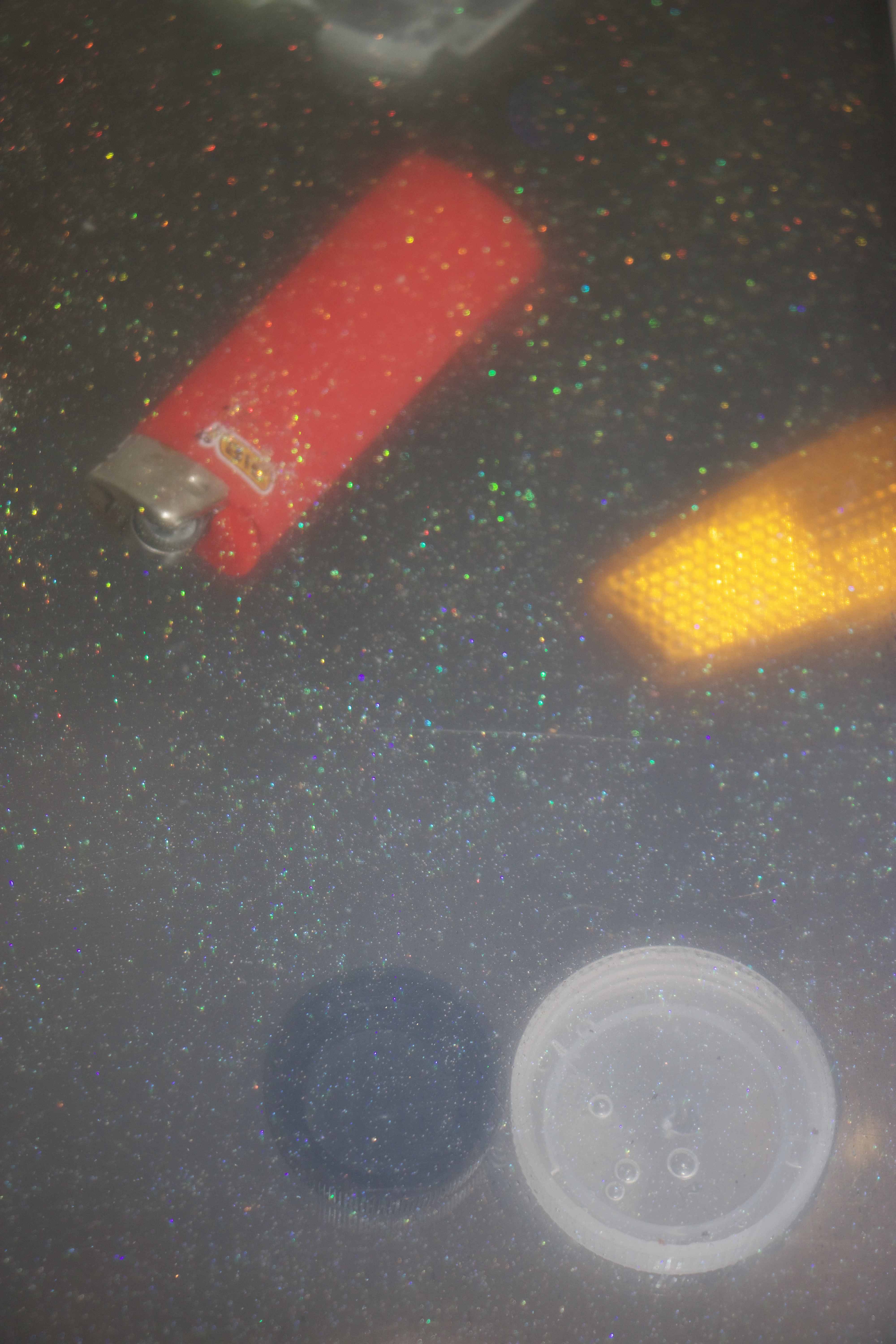 Photographing with a high ISO and using the flash resulted in some i’m is it images depicting deep ocean view with reflections of glitter.Kylie Naylor L Series #2, 2020, Image, found objects, water.Kylie Naylor L Series #3, 2020, Image, found objects, water.
