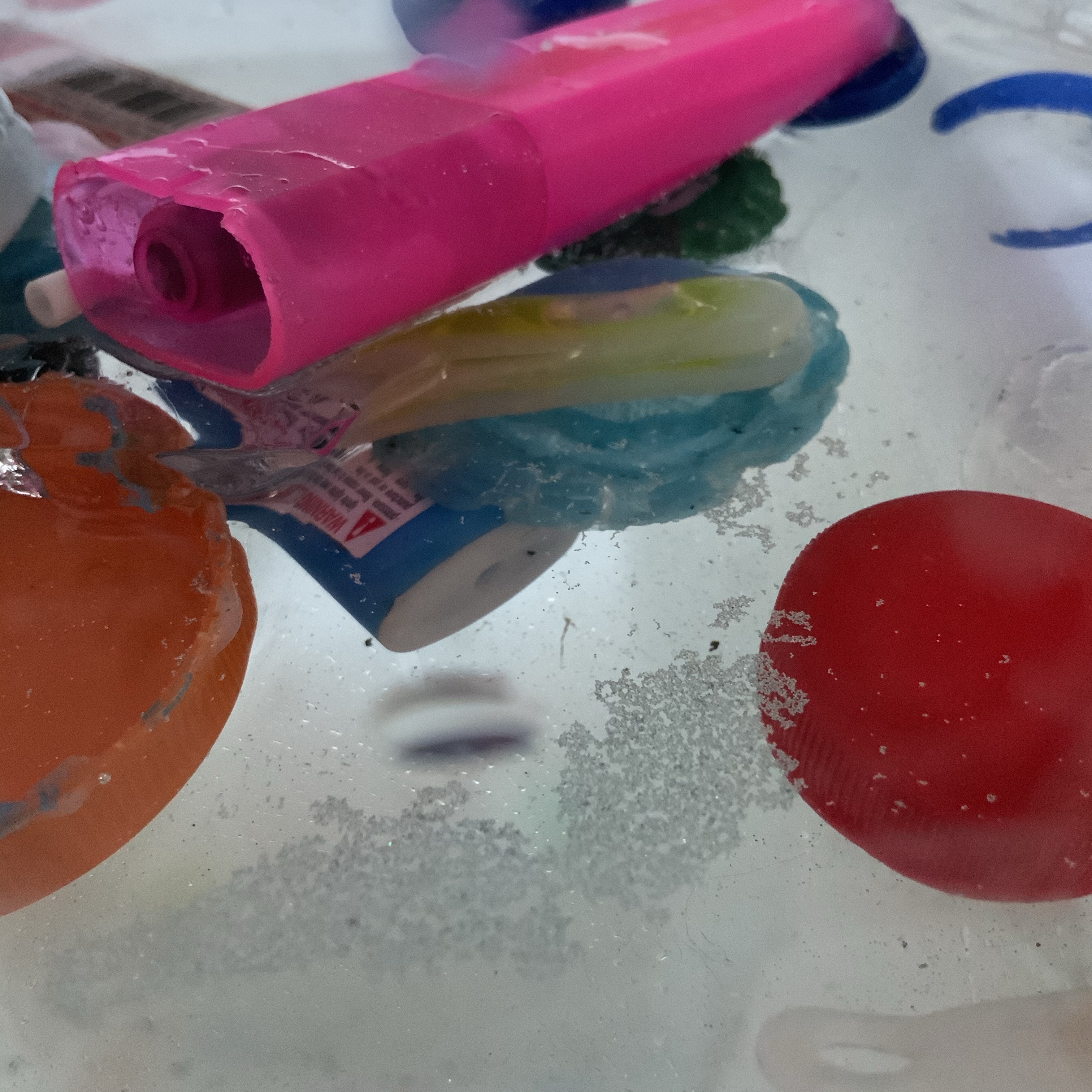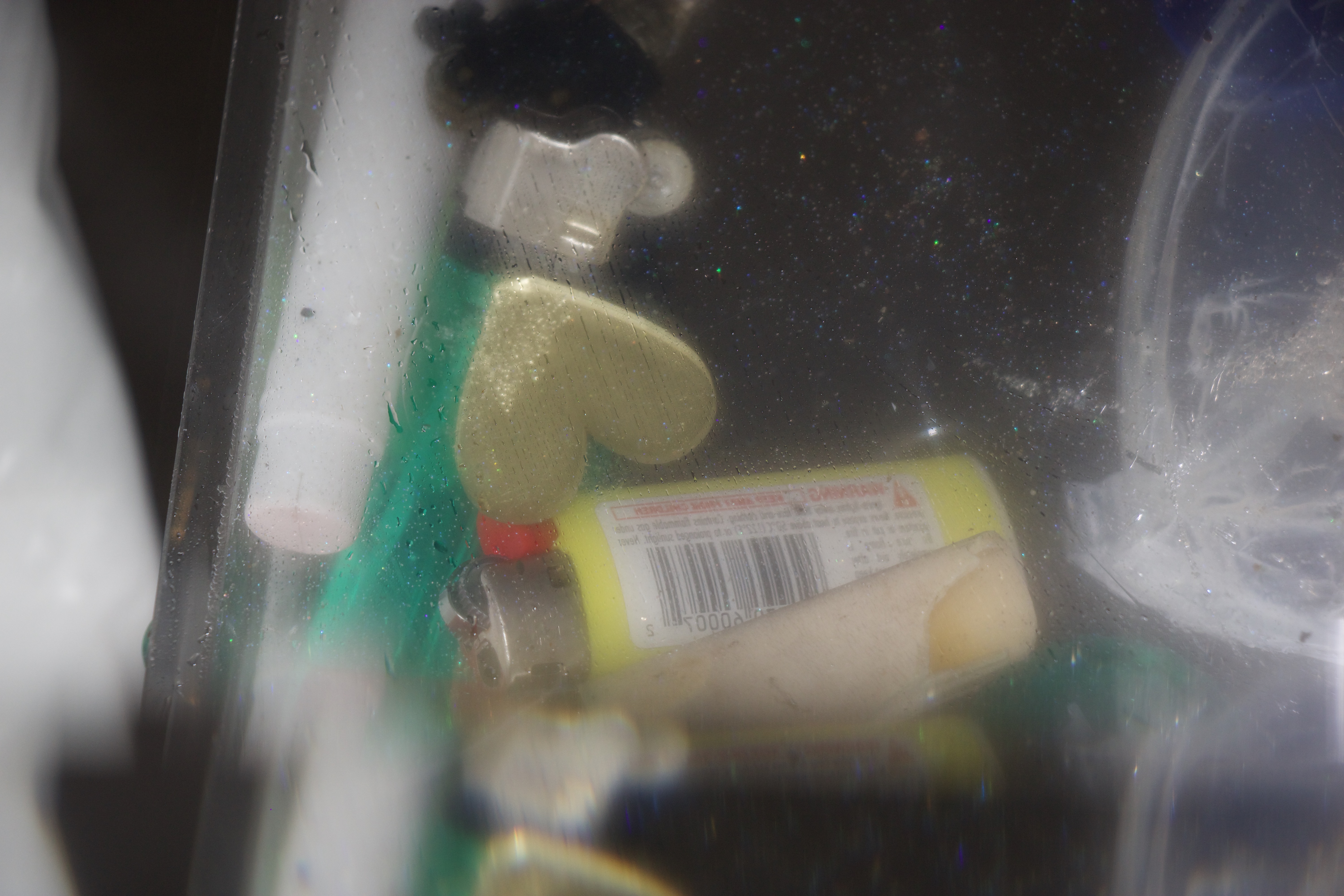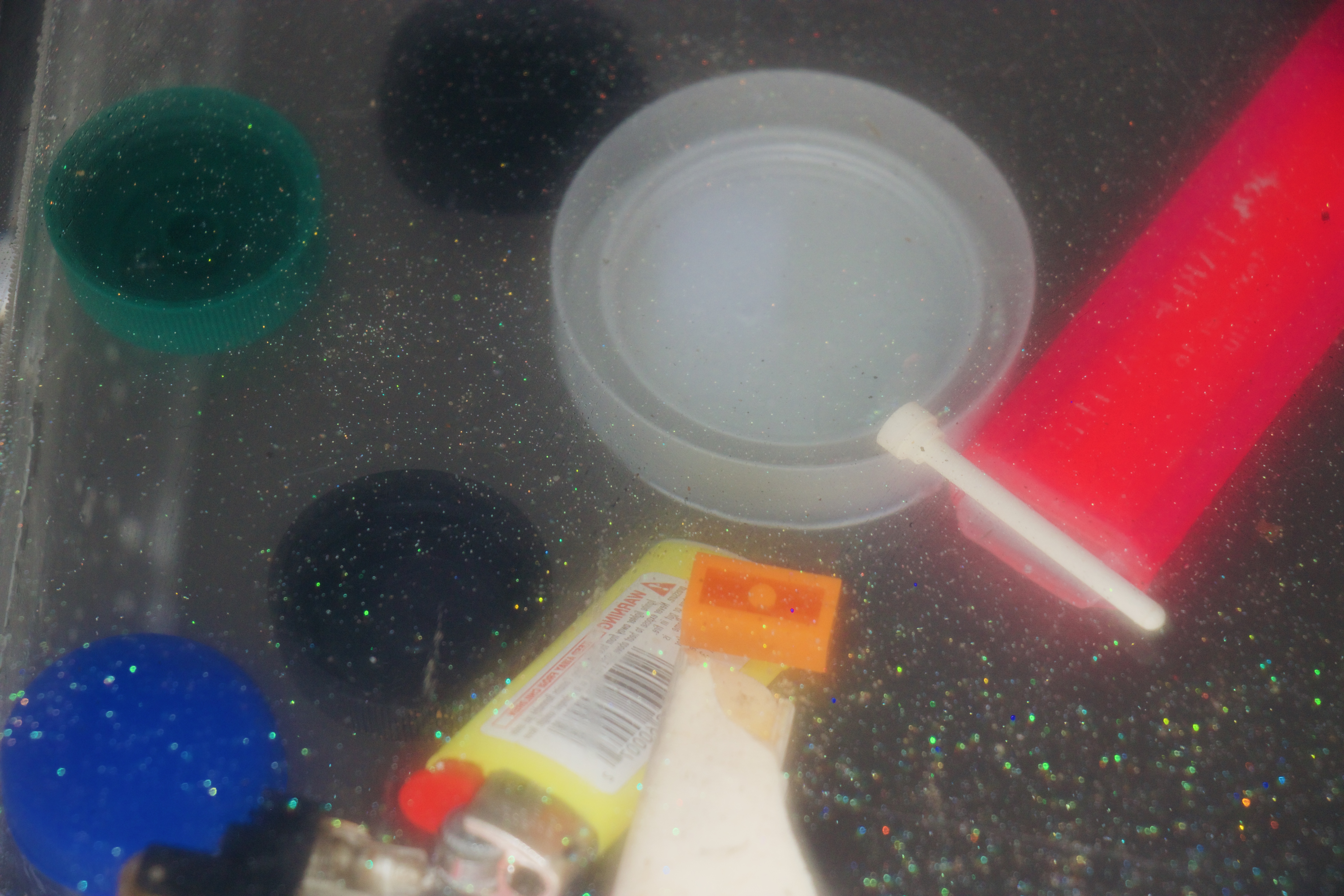 Photographing with a high ISO and using the flash resulted in some i’m is it images depicting deep ocean view with reflections of glitter.Kylie Naylor L Series #2, 2020, Image, found objects, water.Kylie Naylor L Series #3, 2020, Image, found objects, water.