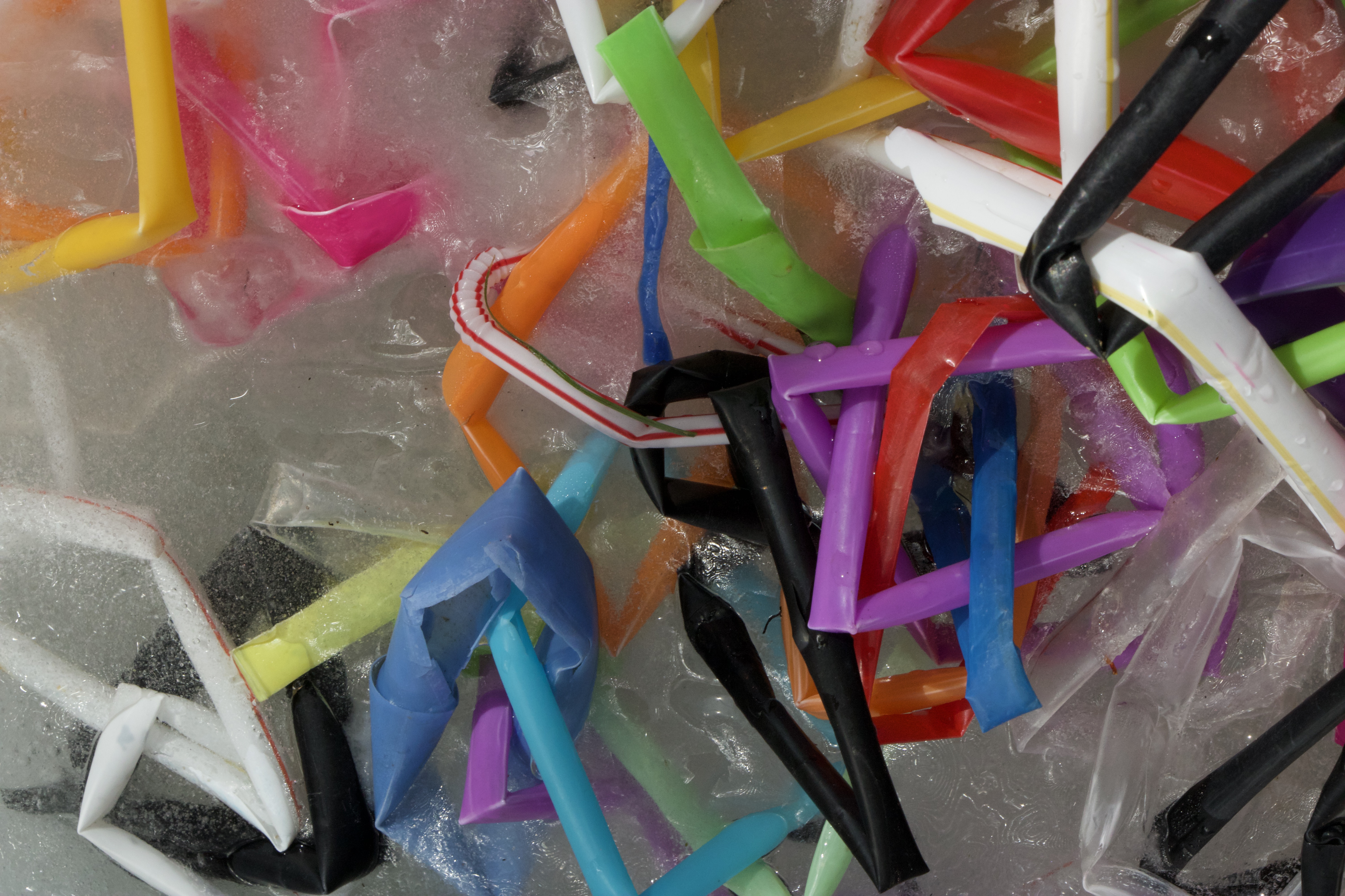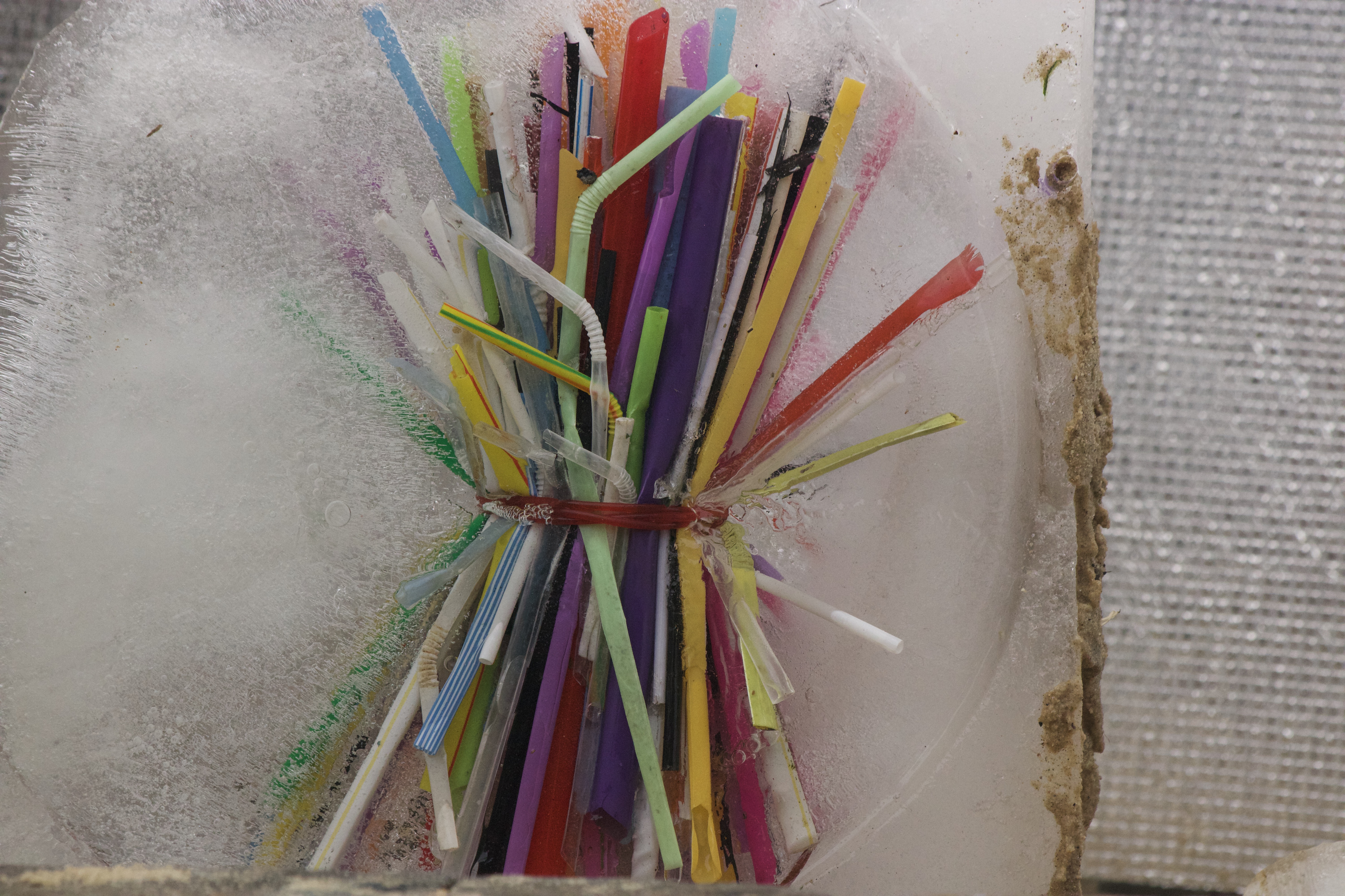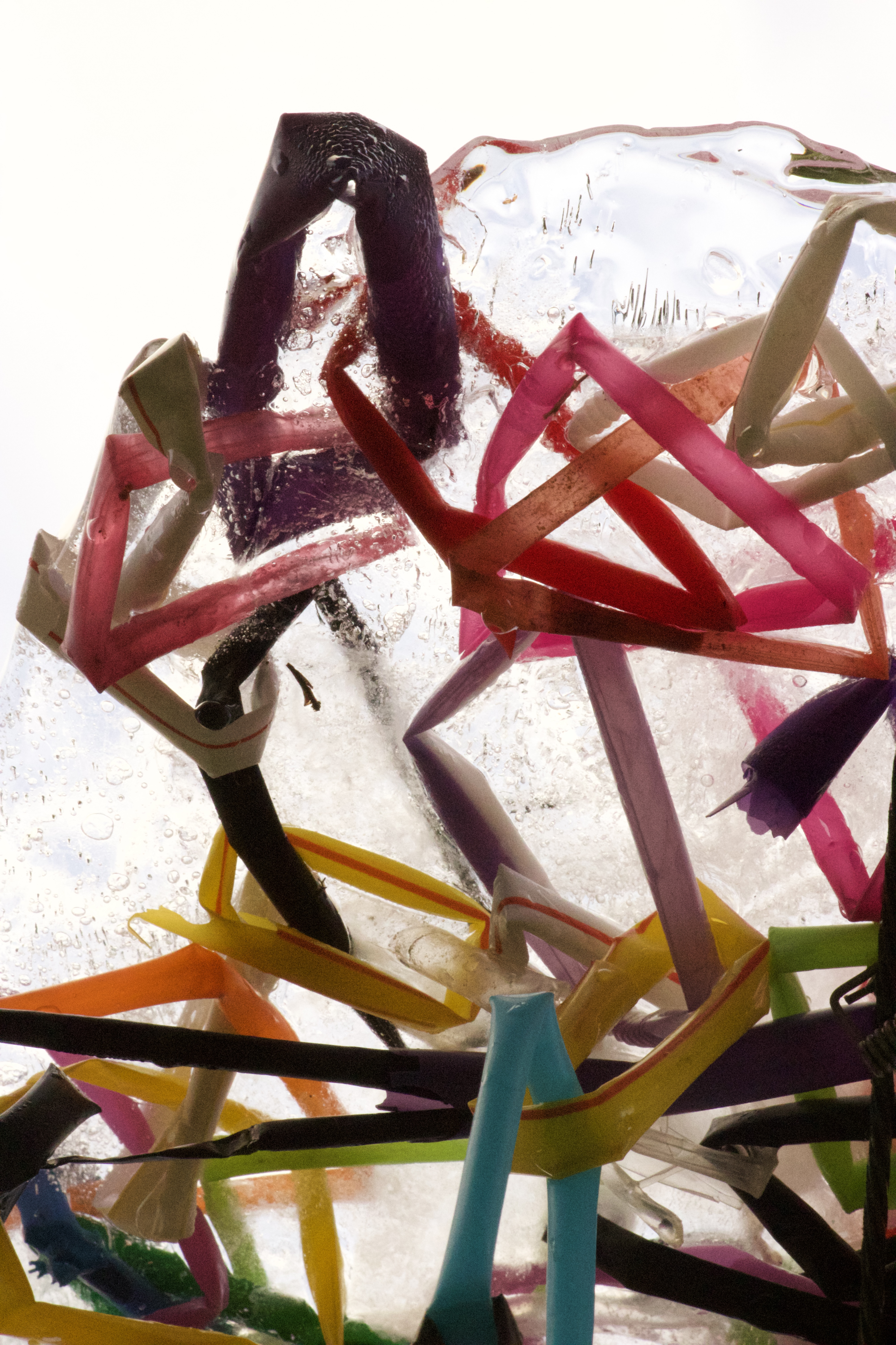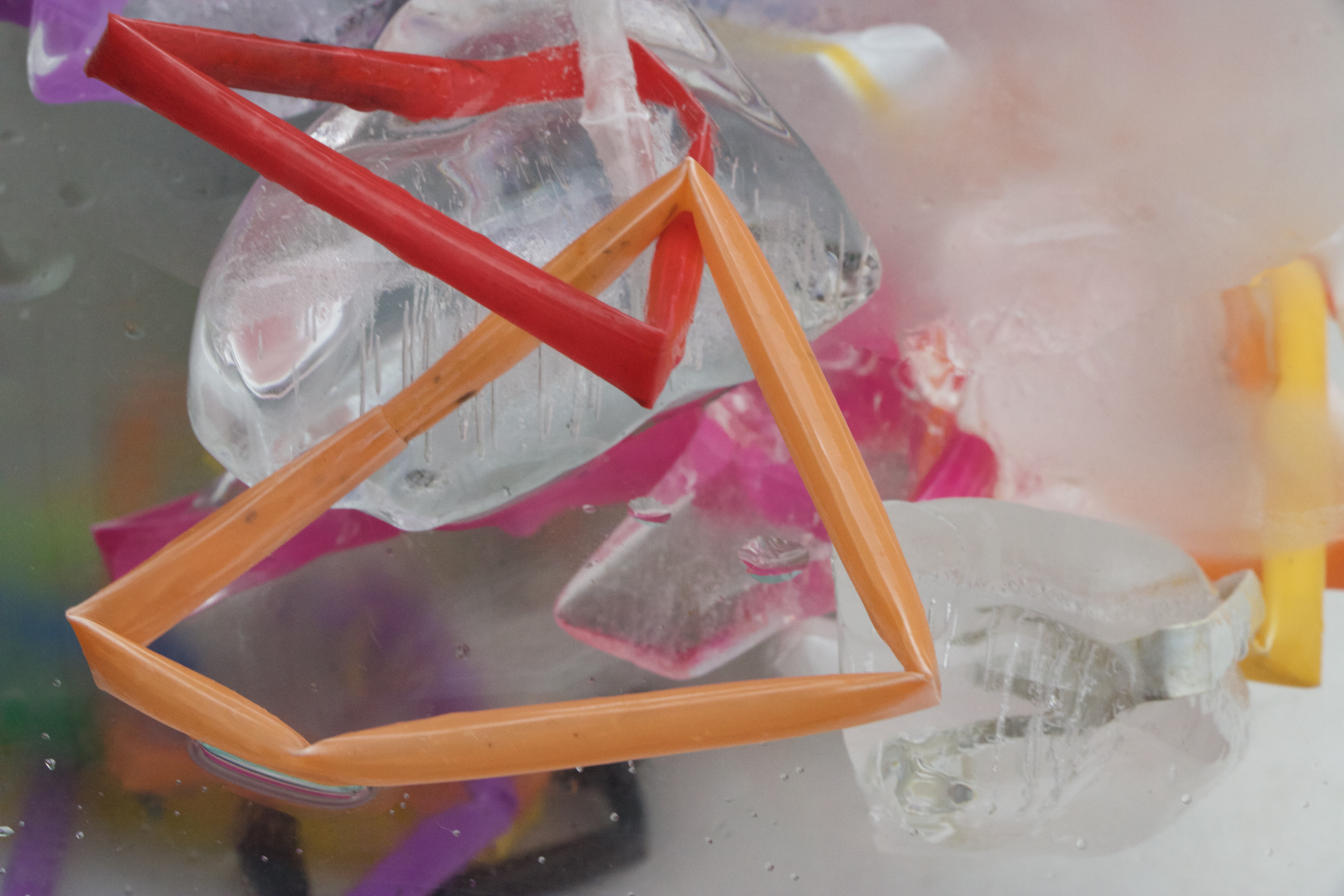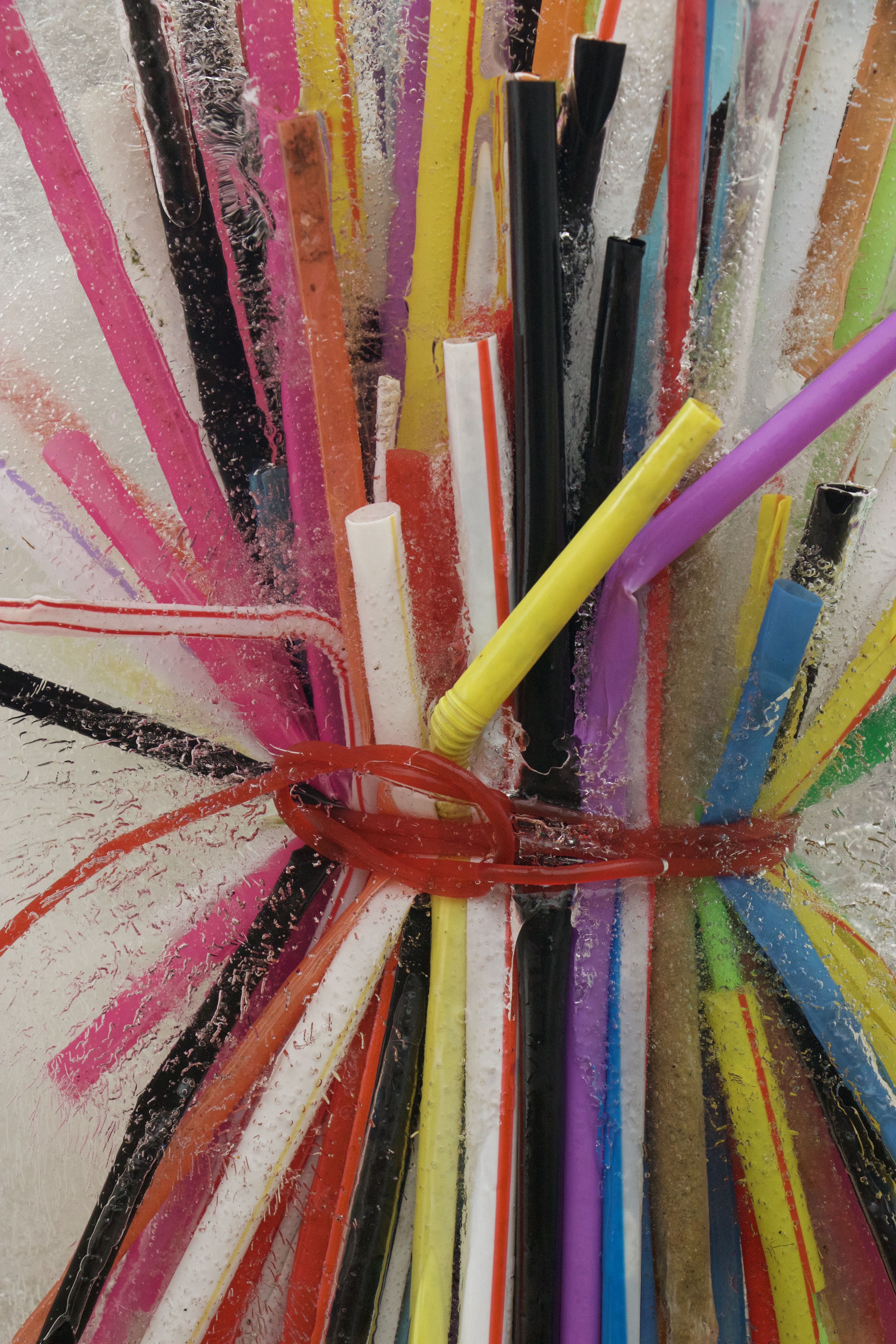 Kylie Naylor, Straws linked I, 2020, image, found objects, brush cutting cord and straws, frozen, photograph, Sydney, Australia.