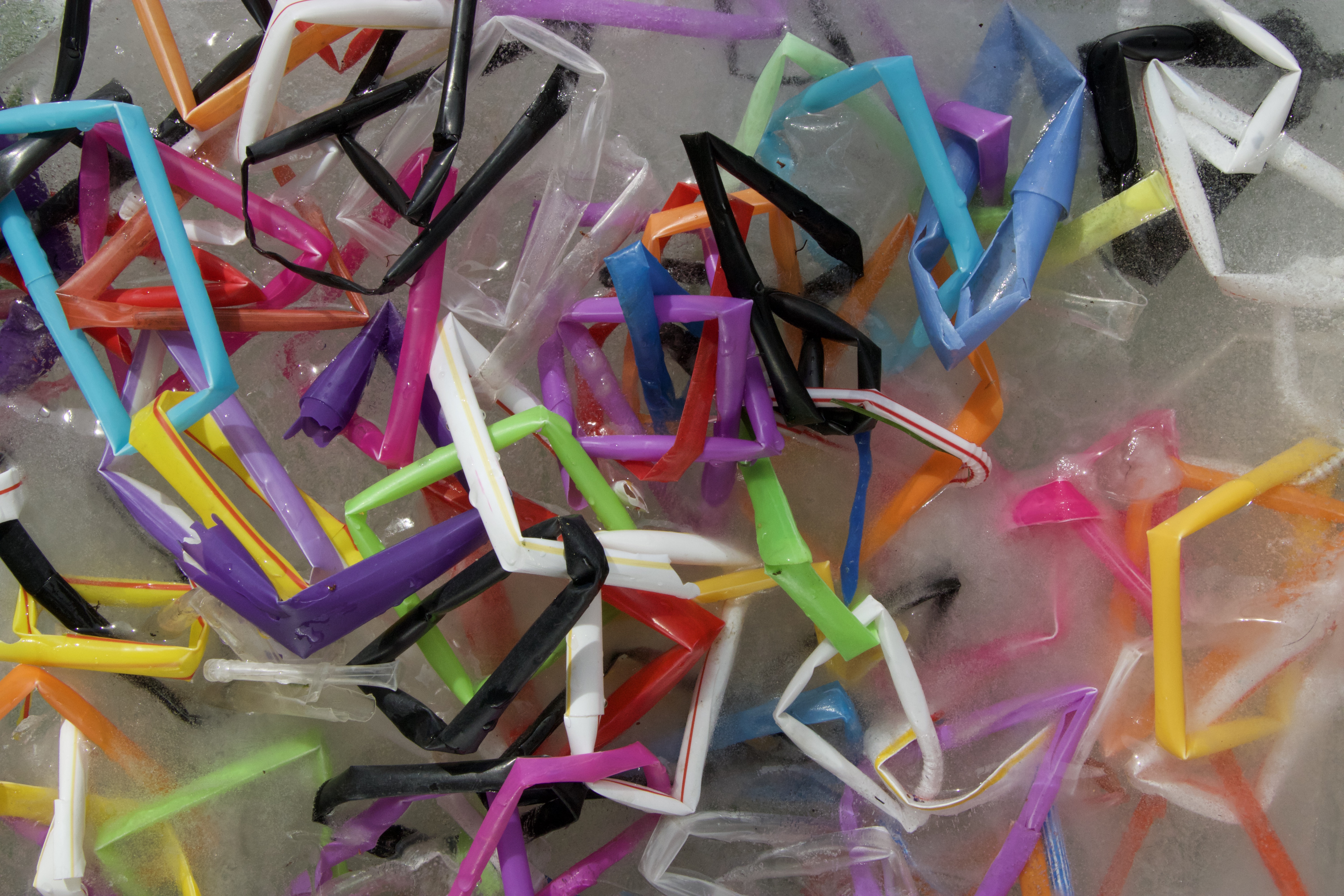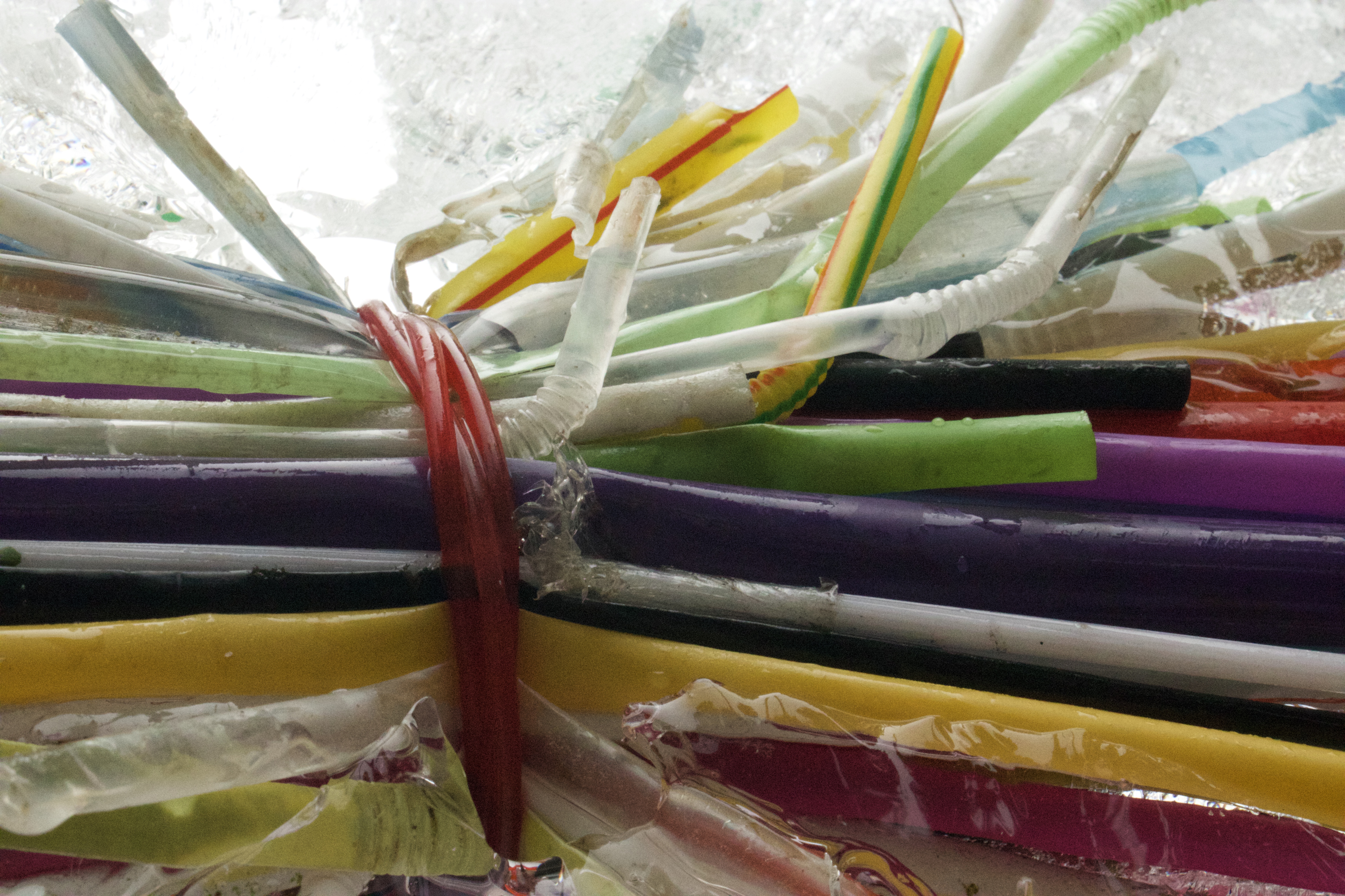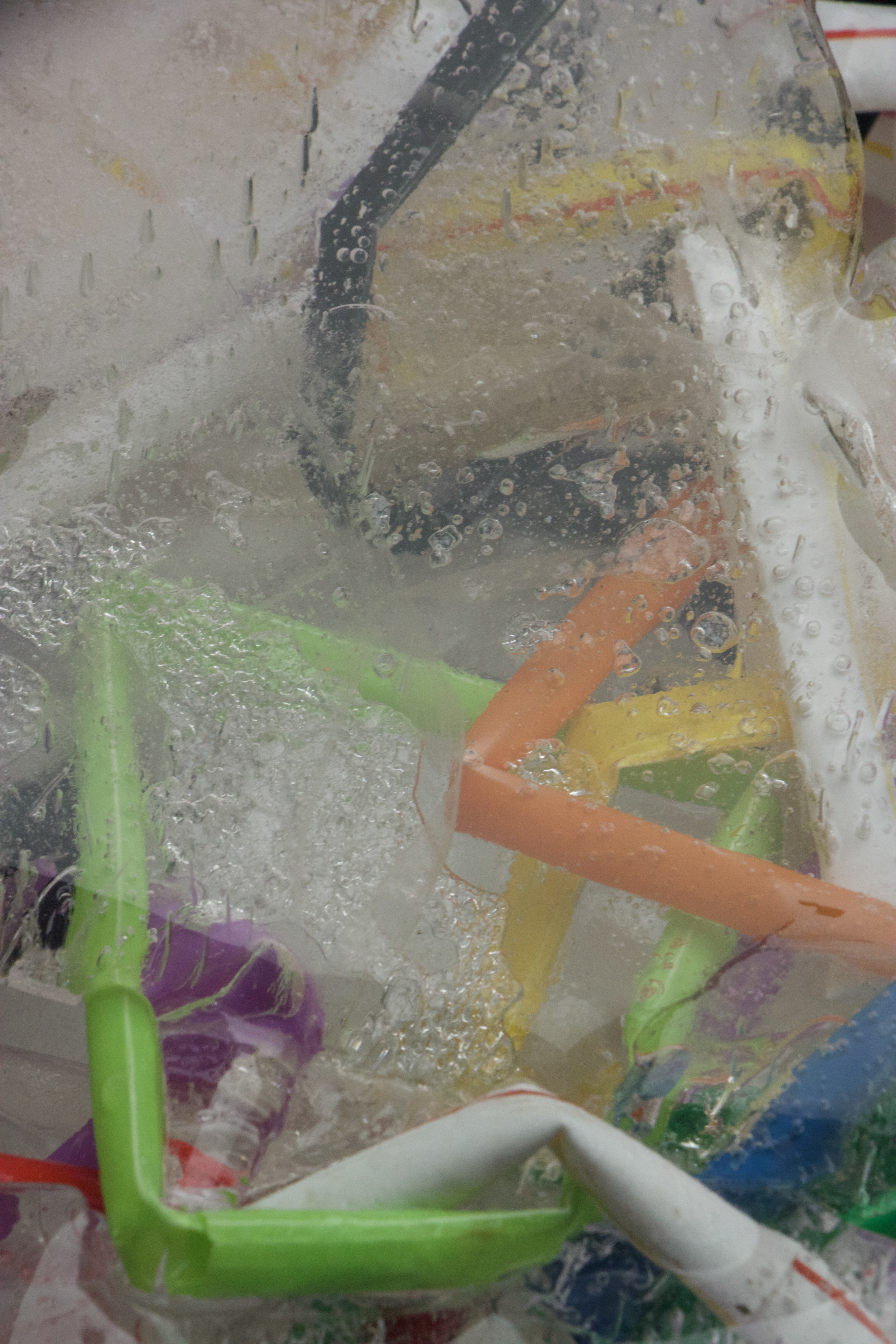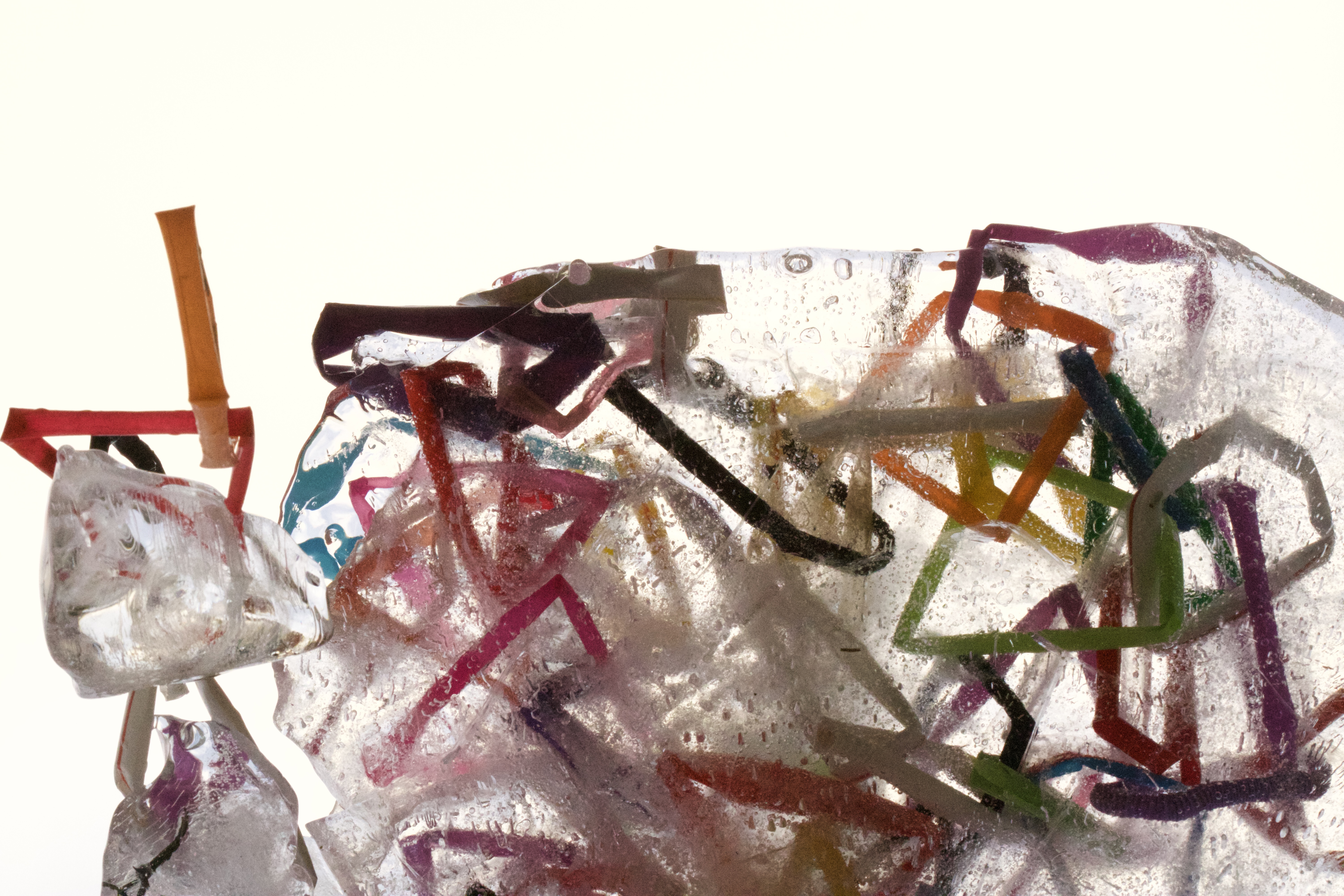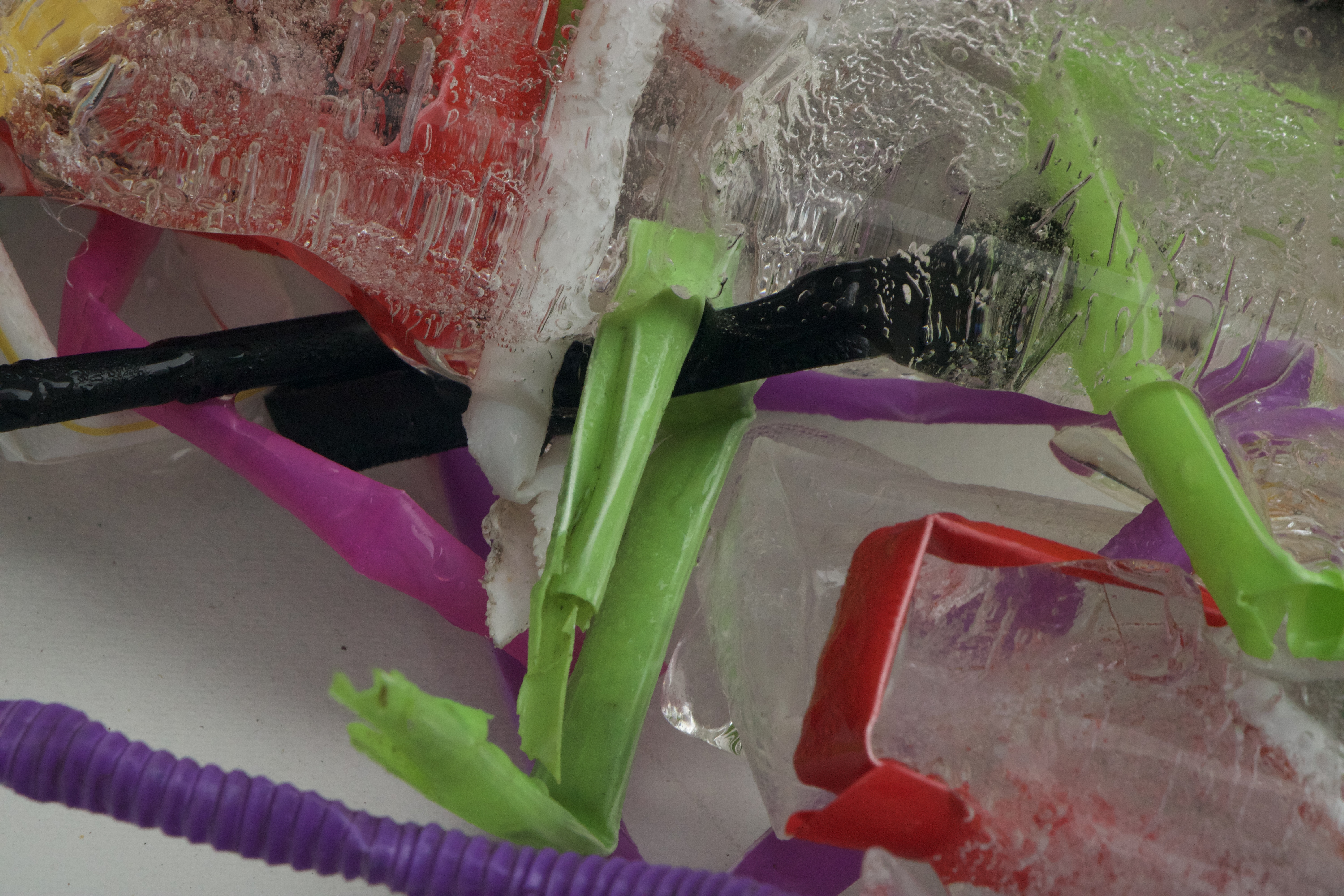 Kylie Naylor, Straws linked I, 2020, image, found objects, brush cutting cord and straws, frozen, photograph, Sydney, Australia.